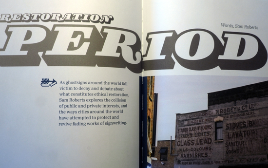 The Recorder proves to be a critical read, with an excellent article by Sam Roberts on ghostsigns and the ethics of restoration, while Harry Leeson looks at how typography manipulates our relationship with the urban environment and applies theories of class to the field of graphic design. Such depth of discussion in one publication is rare outside of Eye magazine, and The Recorder is a welcome, and beautifully produced, addition to critical design writing.