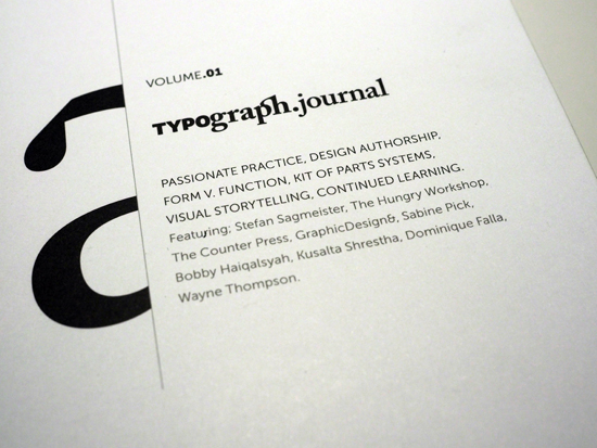 It is also very rewarding to receive Typography.journal through the post as Phillips envelopes the book in its own bespoke wrapping paper and includes print ephemera associated with the release and a hand-written note. This personal approach is a nice touch that reinforces the nature of the publication’s content as well as creating a connection with someone producing such an item half-way around the world.